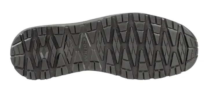 - Zona del talón cerrada y absorción de energía (E): Proporciona un soporte estructural esencial y reduce la fatiga muscular y el riesgo de lesiones, algo vital cuando se trabaja sobre terrenos irregulares.