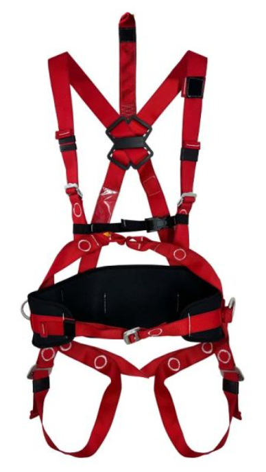 Con cinturón de posicionamiento. Punto anclaje dorsal con extensión de 40 cm. Punto de anclaje frontal.