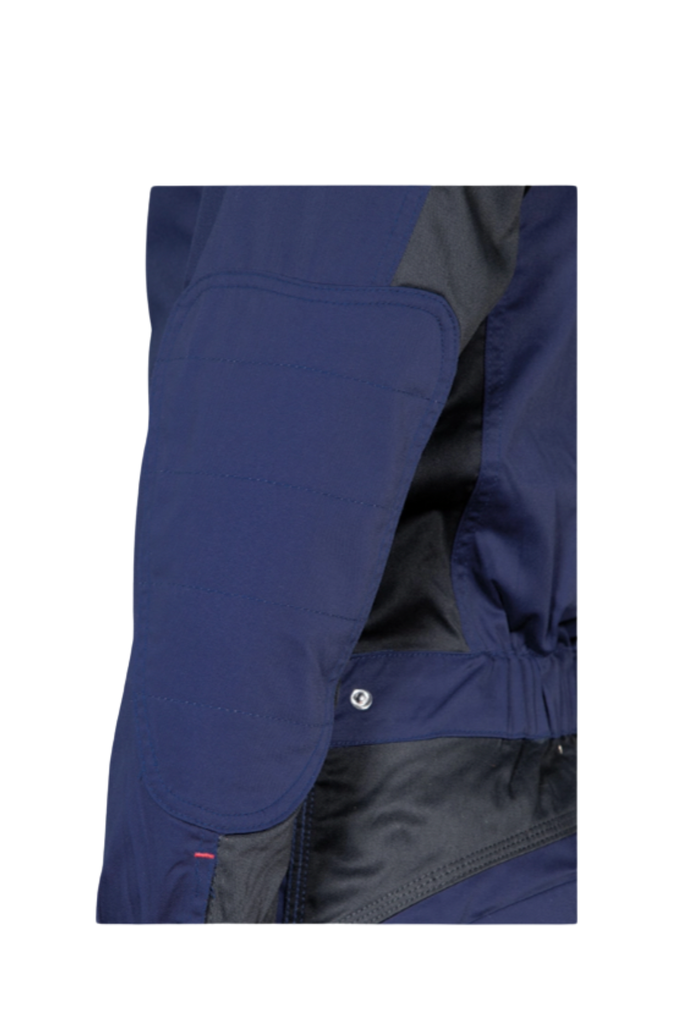 Insertos reflectantes. Múltiples bolsillos portaherramientas. Parches de refuerzo en codos y rodillas. Cintura ajustable con elástico. Composición: 60% algodón 40% poliéster. Gramaje: 245 gr/m²